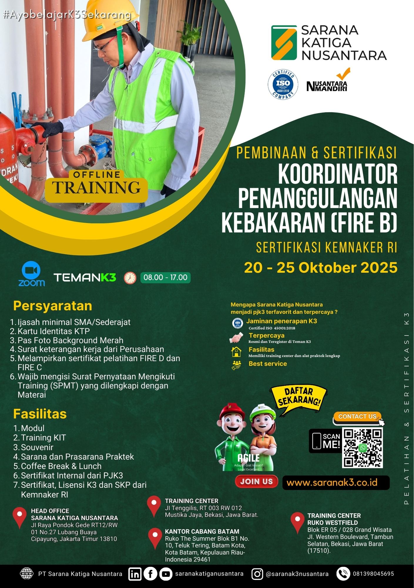 Tujuan melakukan pelatihan koordinator penanggulangan kebakaran (Fire B) yaitu untuk menyiapkan personil yang memiliki kompetensi sebagai berikut: