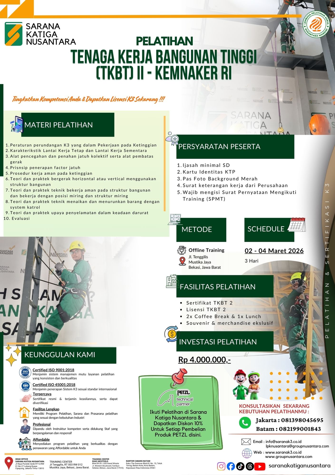 Ikuti pelatihan & sertifikasi K3 resmi Kemnaker RI & BNSP. Daftar sekarang bersama PT Sarana Katiga Nusantara untuk tenaga kerja kompeten & bersertifikat nasional.